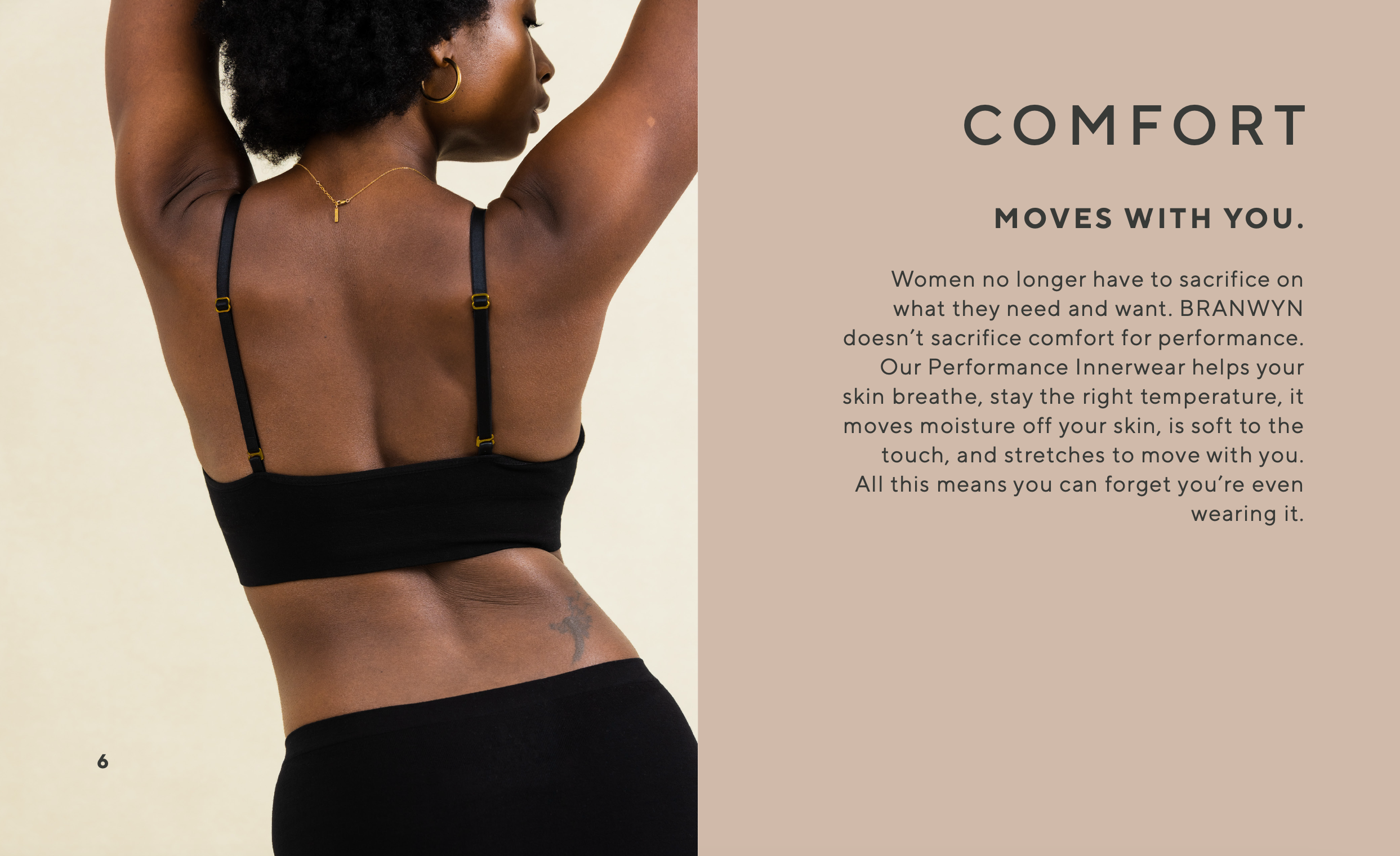 Branwyn creates underwear for women who have had enough of the lace and the frills - prioritizing comfort and performance so you can focus on being your best self, wherever life takes you.
